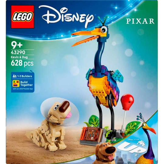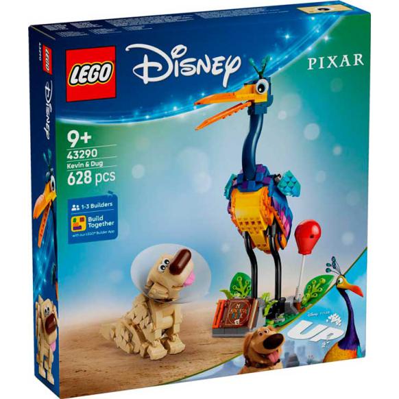 Desc. Técnica: O LEGO® Disney e Pixar Kevin e Dug inclui as personagens do filme Up, com Kevin e Dug acompanhados por acessórios como balão, cone e a coleira especial do Dug. O set vem com um suporte decorativo com folhas móveis e espaço para exposição. As figuras podem ser usadas para recriar cenas do filme ou para exibição. É um conjunto criativo que combina construção, brincadeira e decoração.