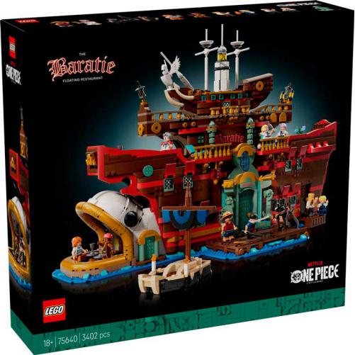 Desc. Técnica: O LEGO® ONE PIECE Baratie, o Restaurante Flutuante, recria um dos cenários mais icónicos da série com todos os detalhes autênticos. O modelo inclui divisões como a cozinha, áreas de jantar e a sala do tesouro, permitindo que revivas as cenas clássicas da série. Com 10 minifiguras, como Luffy, Zoro, Nami e Sanji, além de acessórios como 5 cartazes de "Procurado", este set oferece uma experiência imersiva.