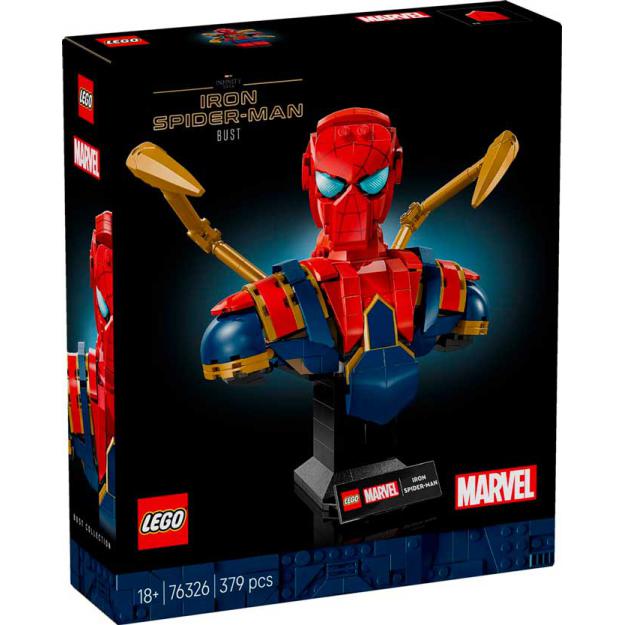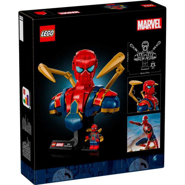 Desc. Técnica: Este icónico set de construção inclui 2 braços mecânicos móveis e uma cabeça rotativa. Inclui 2 bases que podem ser mudadas com uma placa identificadora: uma com espaço para uma minifigura amovível do Iron Spider-Man e outra sem. Este modelo para construir faz parte de uma coleção de bustos de Super-heróis (vendidos separadamente).