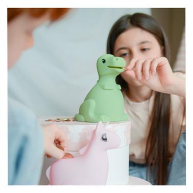 Desc. Técnica: KIDYBANK é um mealheiro elegante e divertido para os mais pequenos. Com a forma de um dinossauro, vai decorar o quarto do seu filho com muito bom gosto. O mealheiro é feito de silicone macio, fácil de segurar e ideal para evitar a quebra em caso de queda. Graças ao seu tamanho compacto, o seu filho pode transportá-lo facilmente quando necessário.
