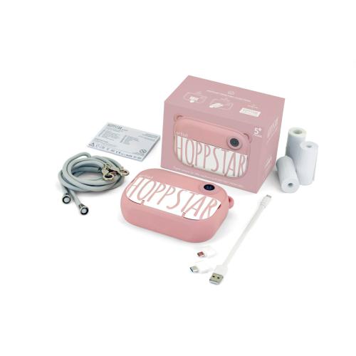 Com impressão instantânea, esta máquina é a companhia ideal para pequenos exploradores descobrirem o mundo que as rodeia! Em apenas 3 segundos, tem a fotografia a preto e branco que pode colorir, oferecer ou admirar. A máquina Hoppstar Artist tem função selfie e vídeo e muitas molduras e filtros divertidos. As imagens da câmara frontal e selfie podem ser impressas diretamente usando o botão de impressão ou posteriormente, usando o álbum. Todas as imagens e vídeos são armazenados no cartão de memória. Estimula a criatividade e a coordenação motora. Inclui cartão de 16 GB, 3 rolos de impressão, cabo de dados e cordão para transportar. Os materiais utilizados são seguros e de qualidade certificada. Capacidade da bateria: 1500 mAh; Tempo de carregamento: aprox. 2,5h; Material principal: ABS; Tensão de entrada: DC 5V - 1A; Ecrã IPS de 2,0"; Impressão térmica direta, a preto e branco; Resolução de impressão: 200 DPI. Feito na China. Contém peças pequenas. Perigo de asfixia e estrangulamento. Adequado para crianças com mais de 5 anos.