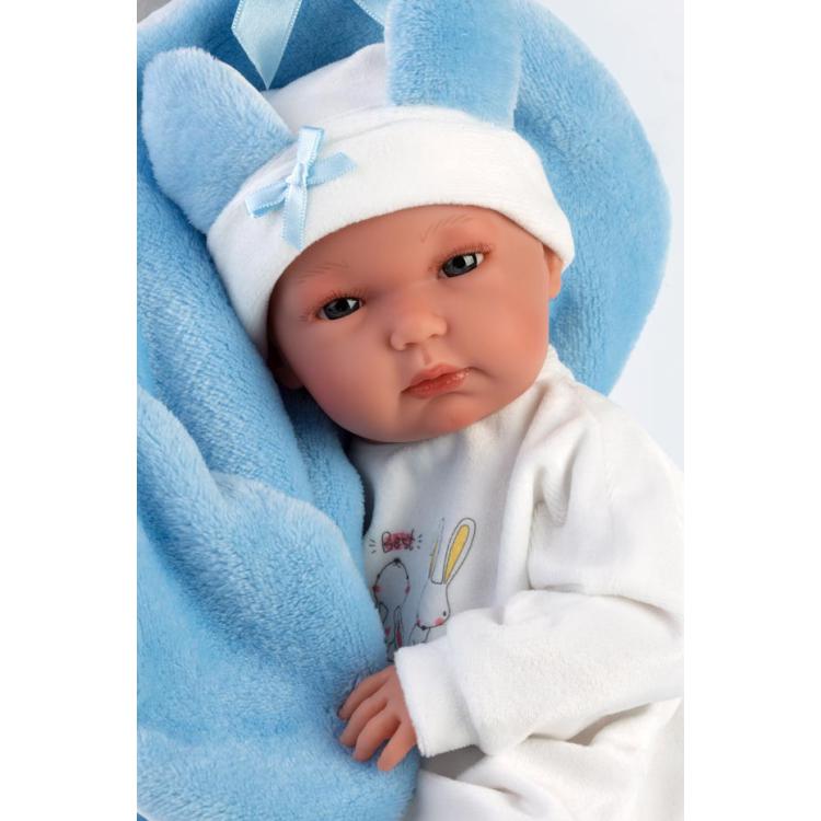 Desc. Técnica: Boneca de 35 cm com corpo de vinil, muito macio. Braços e pernas articulados. Inclui chupeta e almofada. Roupa de algodão, lavar com água fria. Feito à mão em Espanha.