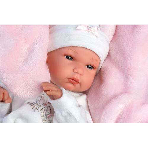 Desc. Técnica: Boneca de 35 cm com corpo de vinil, muito macio. Braços e pernas articulados. Inclui chupeta e almofada. Roupa de algodão, lavar com água fria. Feito à mão em Espanha.