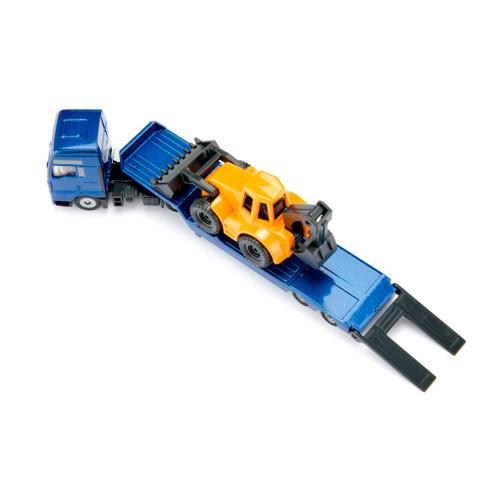 Desc. Técnica: Este ano, a SIKU apresenta uma verdadeira sensação no mundo da construção civil: o camião MAN com retroescavadora. Este reboque rebaixado não é um camião como os outros, mas sim o transporte VIP que põe em movimento os heróis da construção civil. Desde grandes obras na vida real até pequenos projetos no quarto das crianças, este nome é mais do que um logótipo: é uma promessa. Uma promessa que a SIKU traz para o mundo dos brinquedos com o seu modelo de reboque rebaixado. Porque, quando a carga é descarregada, não há como parar: a retroescavadora procura por tesouros perdidos no sofá.